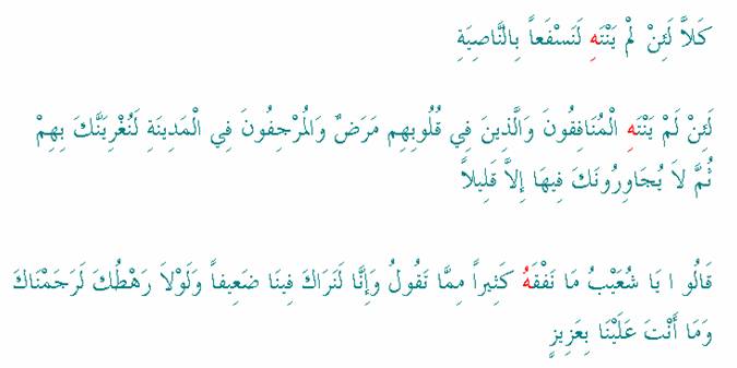 Alak suresi ( 96/15) ,Ahzap suresi(33/60) ve Hud